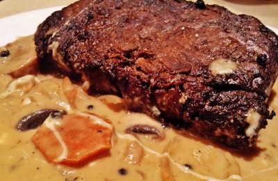 بعد ما تنضج نقوم بتحضير الصلصة وذلك بفرم البصلة ناعم ونقليتها بالزبدة حتى تذبل ثم نضيف الفطر ونقليه .. بعدها نضيف الطحين نقلبه ونبدا بصب الماء له.. نحرك جيدا ونتاكد من الملح والنكهة ثم نضيف الكريمة والجبنة ..اخيرا نضيف عصرة ليمون فلفل اسود وجوزة الطيب حسب الرغبة.. الان نقوم بنقل اللحم وحبات الجزر والفلفل الاسود مع ملعقتين كبيرتين من ماتبقى من مرق الى جانب اللحم فوق الصلصة ونتركهم يغلو ربع ساعة دون تقليب اللحم وتكون جاهزة